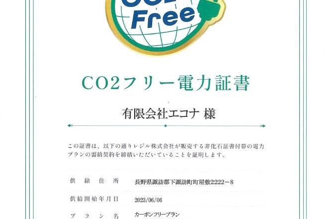 この度、有限会社エコナは、持続可能な社会の実現に向けた環境への取り組みの一環として、当社の事業所で使用する電力をCO2排出係数が実質ゼロとなる「CO...